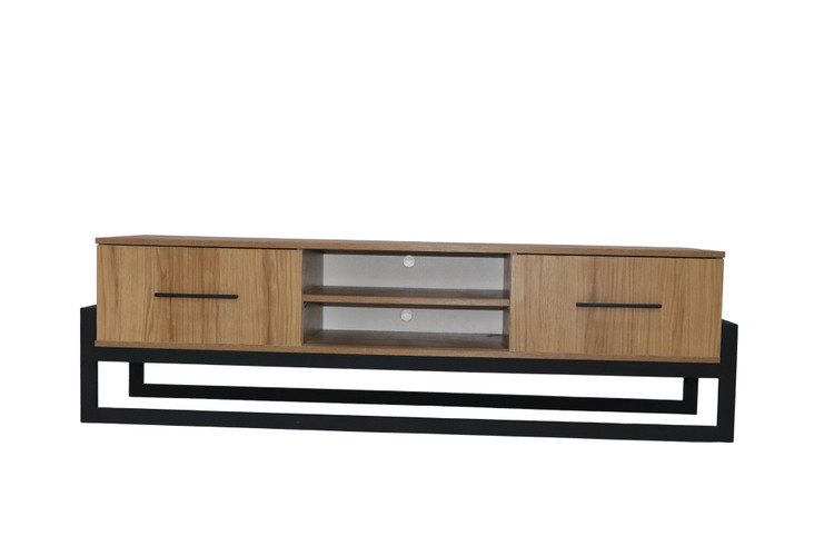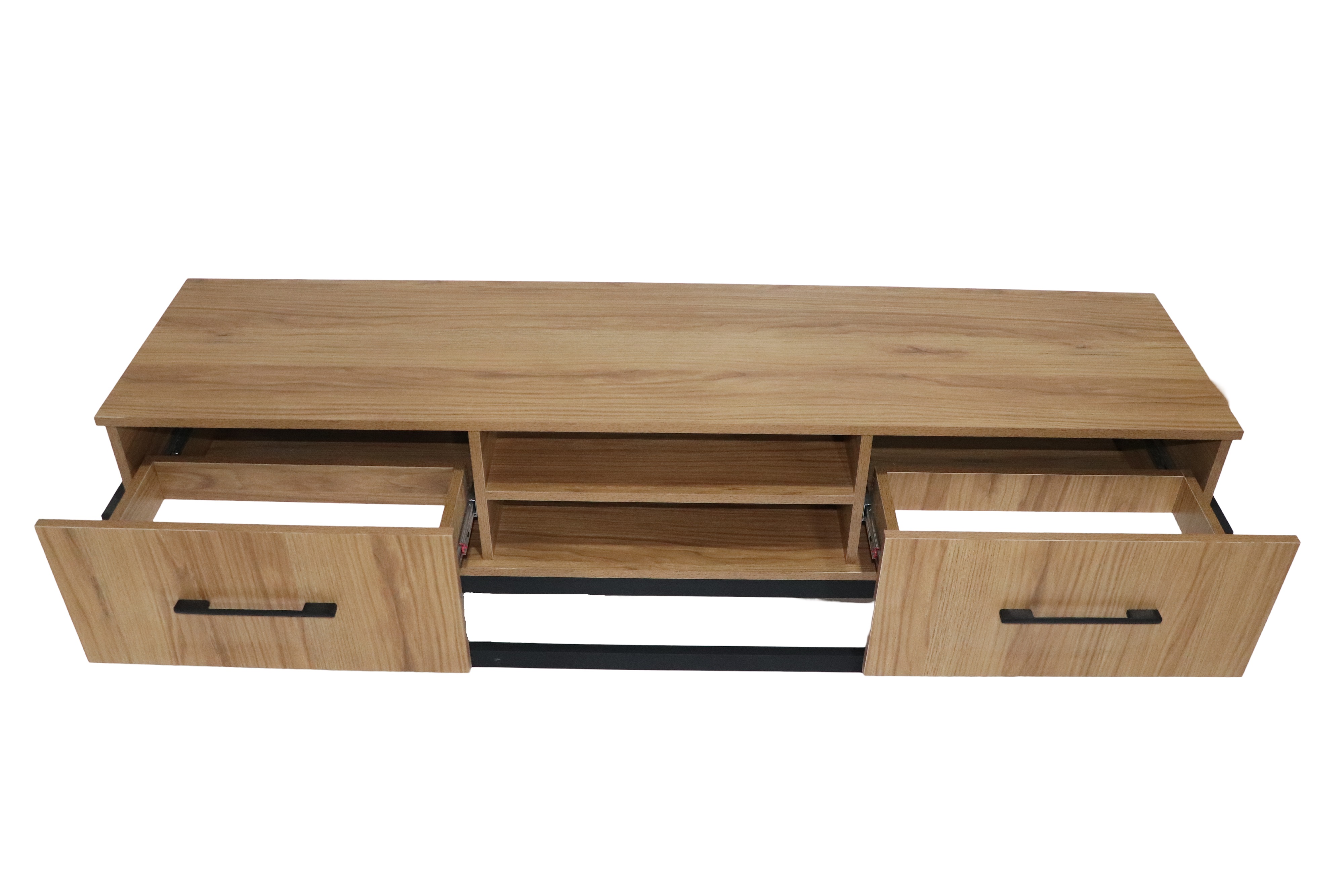 1. طراحی زیبا: ترکیب فلز و امدیاف بههمراه طراحی مدرن این میز تلویزیون، ظاهری زیبا و جذاب به اتاق میبخشد.